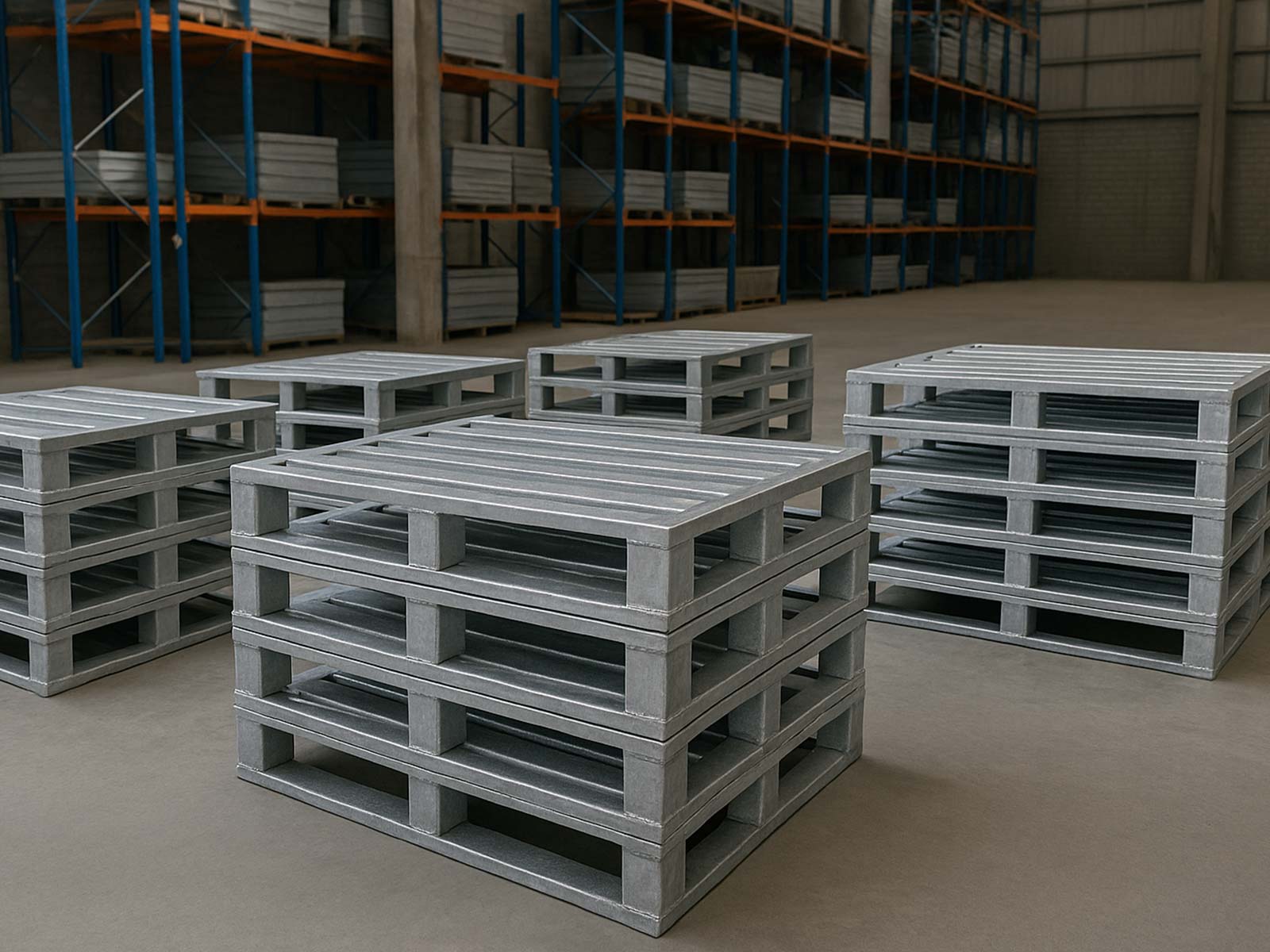 2. Stackable Steel Pallets: Maximize vertical storage and reduce floor clutter.